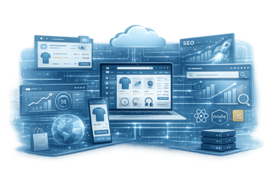 Desarrollo de una plataforma e-commerce a medida, optimizada para rendimiento y posicionamiento SEO, orientada a maximizar las ventas y reducir la dependencia de plataformas de terceros.